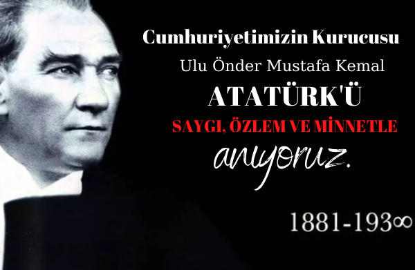 Aramızdan ayrılışının 82. yılında Cumhuriyetimizin Kurucusu Ulu Önder Mustafa Kemal Atatürk'ü saygı, özlem ve minnetle anıyoruz.