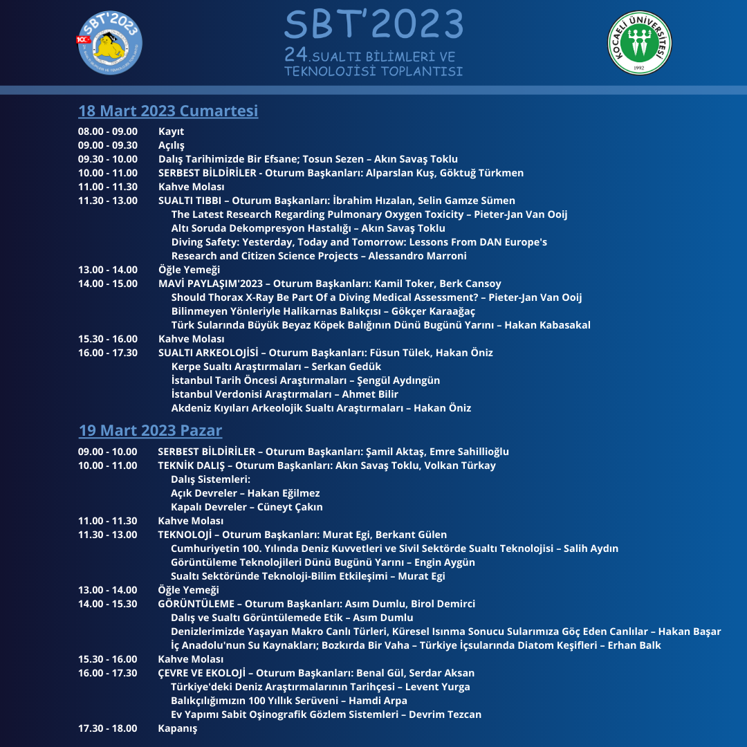 24. Sualtı Bilimleri ve Teknolojisi Toplantısı Bilimsel Programına göz atmayı unutmayın!