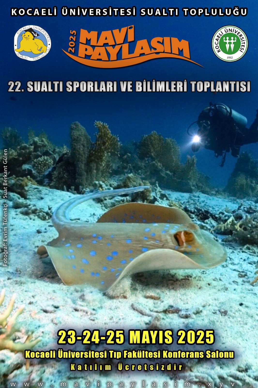 Mavi Paylaşım Sualtı Sporları ve Bilimleri Toplantısı 23-24-25 Mayıs tarihlerinde gerçekleştirilecektir.