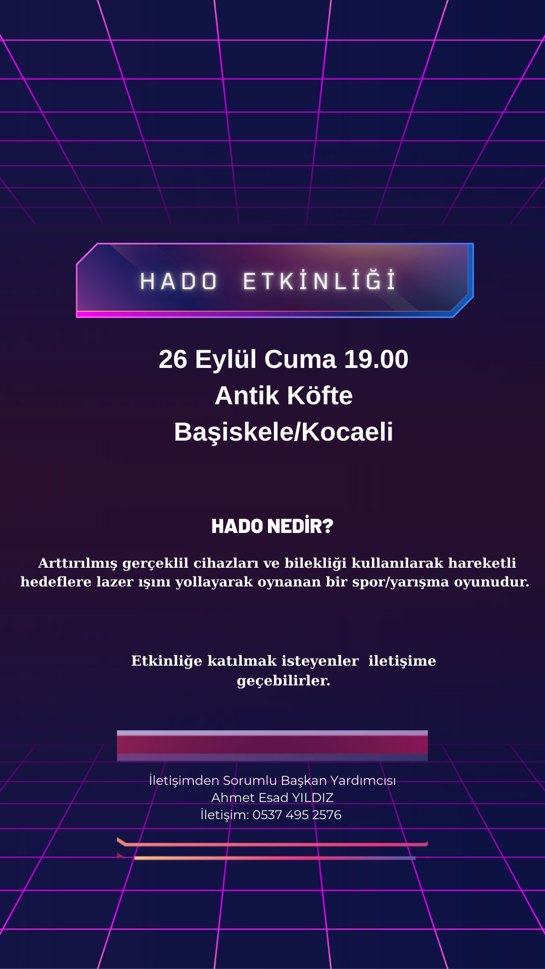 7 - 8 Mayıs Cuma ve Cumartesi günleri düzenlenecek olan KOÜSAT Çevrimiçi Oyun Turnuvası'na katılmak isteyenlerin Göktuğ Türkmen ile iletişime geçmeleri gerekmektedir. Göktuğ Türkmen : 05346859601
