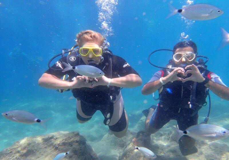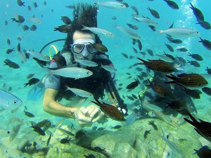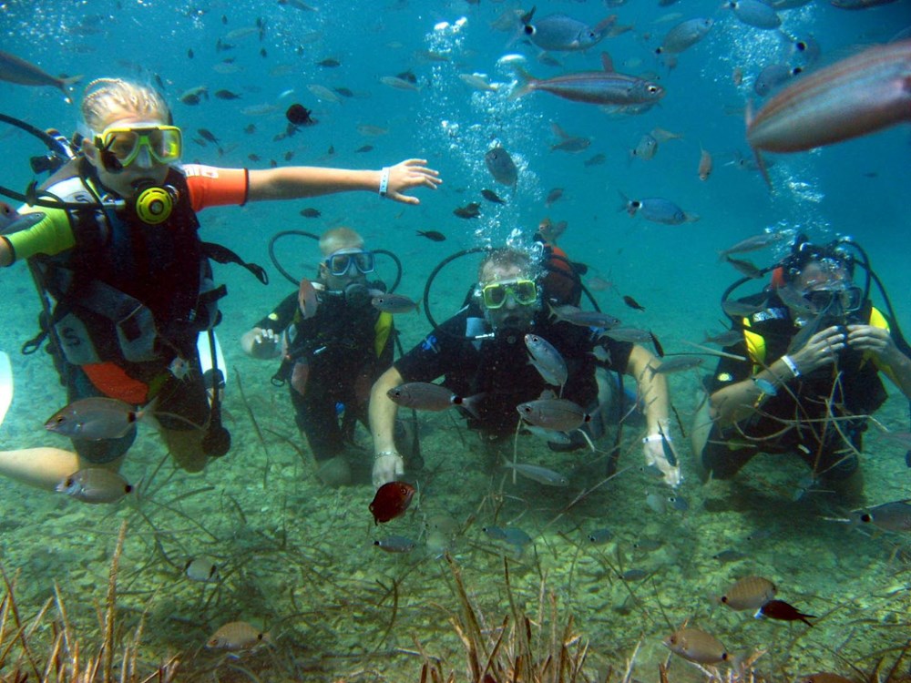 Burada dalışlar çok sığ bir geçitle birbirinden ayrılmış iki adanın hem dış (doğu) hem de iç (güneybatı) tarafında yapılabiliyor. Sırtı 4,5 metreye kadar çıkan güney sığlıktaki kayalar ve doğusundaki kumluk yamaç, değişik deniz çayırları, küçük adanın etrafındaki kayaların altları ve doğusundaki sığ banko, büyük adanın kuzeydoğusundaki derin döküntü, ufak batık parçası. hepsi apayrı ve zengin ekolojik ortamlar sunuyor. Kumlukta balon balıkları, çütreler, vatos, kaplumbağalar ve denizatı görmek mümkündür.